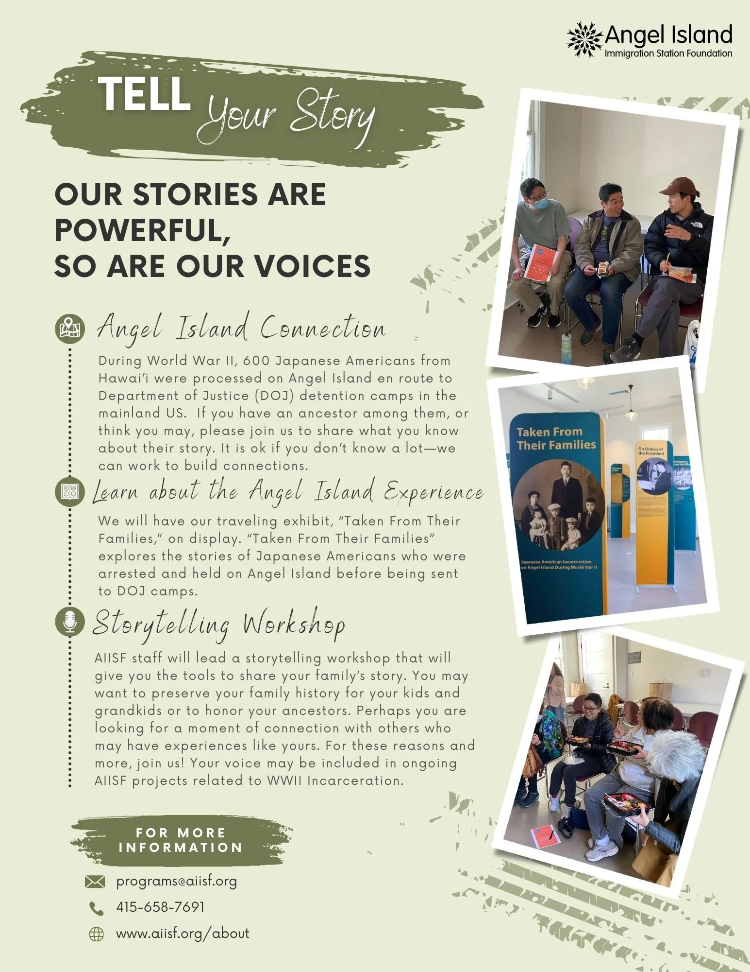 Join us at a storytelling workshop on Sunday, February 25 at Japanese Cultural Center of Hawaii Ballroom at 2454 South Beretania Street, Honolulu, HI 96826.