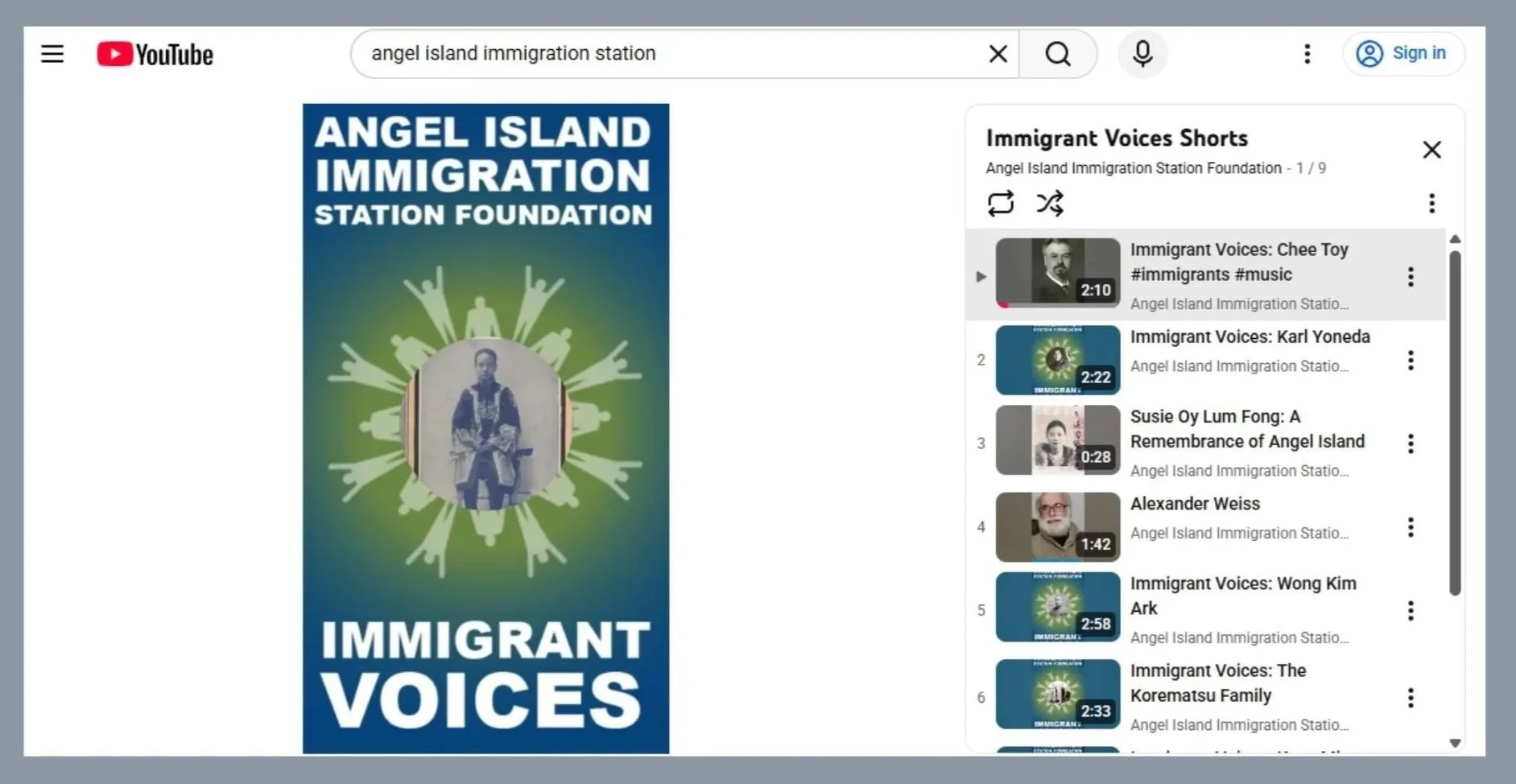 Did you know that AIISF has a YouTube channel? Check out Angel Island Immigration Station Foundation (@AIISForg) to watch videos such as our Immigrant Voices Shorts: stories of people who were detained at Angel Island.