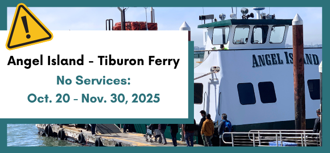 If you booked a tour during the closure and were planning to take the Angel Island - Tiburon Ferry, please note these alternatives:
