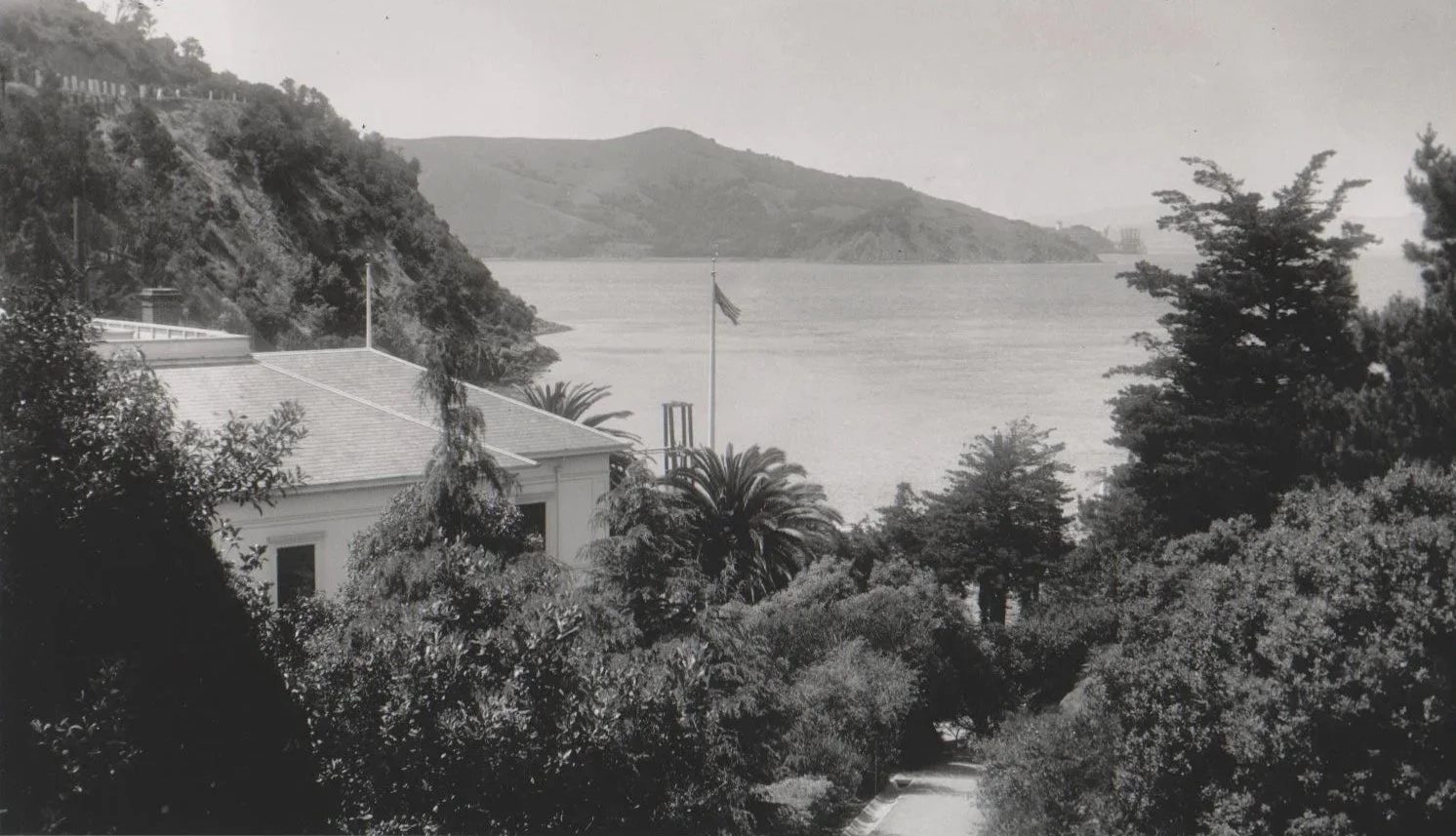 In this undated photo of the immigration station, the photographer stands on the hospital slope looking out at China Cove. The plant growth would indicate it was taken in the late-1920s or early-1930s.